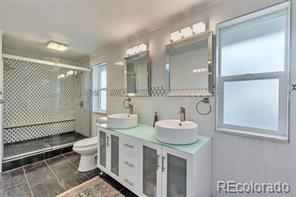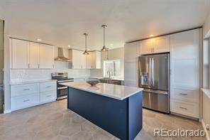 Beautifully remodeled Denison model in Willow Creek. Solid cherry and mahogany hardwoods on main floor and upper floor. All new bathrooms. New kitchen with new GE Profile counter-depth french door refrigerator, new GE Profile Stove/oven/range which has 2 ovens New kitchen island 90" by 36" with level 5 granite. Same granite on windowsills in kitchen and family room and upstairs bathrooms. All 4 upstairs bedrooms have walk -in closets with cedar floors. Master bath has an oversized shower with dual shower heads and separate controls. Second upstairs bedroom has a jetted tub and dual sinks. Vaulted entry with stunning crystal chandelier. Open floor plan perfect for entertaining. Kitchen opens to family room with fireplace and stone wall. Kitchen also opens to brand new oversized deck. New Milgard windows throughout entire house. Walkout basement features a good sized second family or play room, full 5th bedroom, new 3/4 bath with full size shower. All finished basement space is above ground. New driveway and entry. Roof to be replaced prior to close. Homebuyers warranty. Wonderful Cherry Creek schools including Cherry Creek High School. Agent owner. House does not back to Quebec.